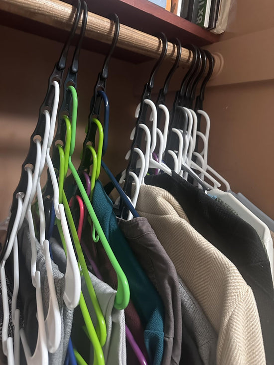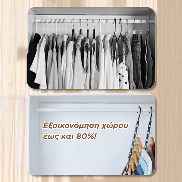 Το σετ των 10 κρεμαστρών σου προσφέρει αρκετό χώρο για να ανανεώσεις ολόκληρη τη ντουλάπα σου, εξοικονομώντας έως και 80% περισσότερο χώρο.